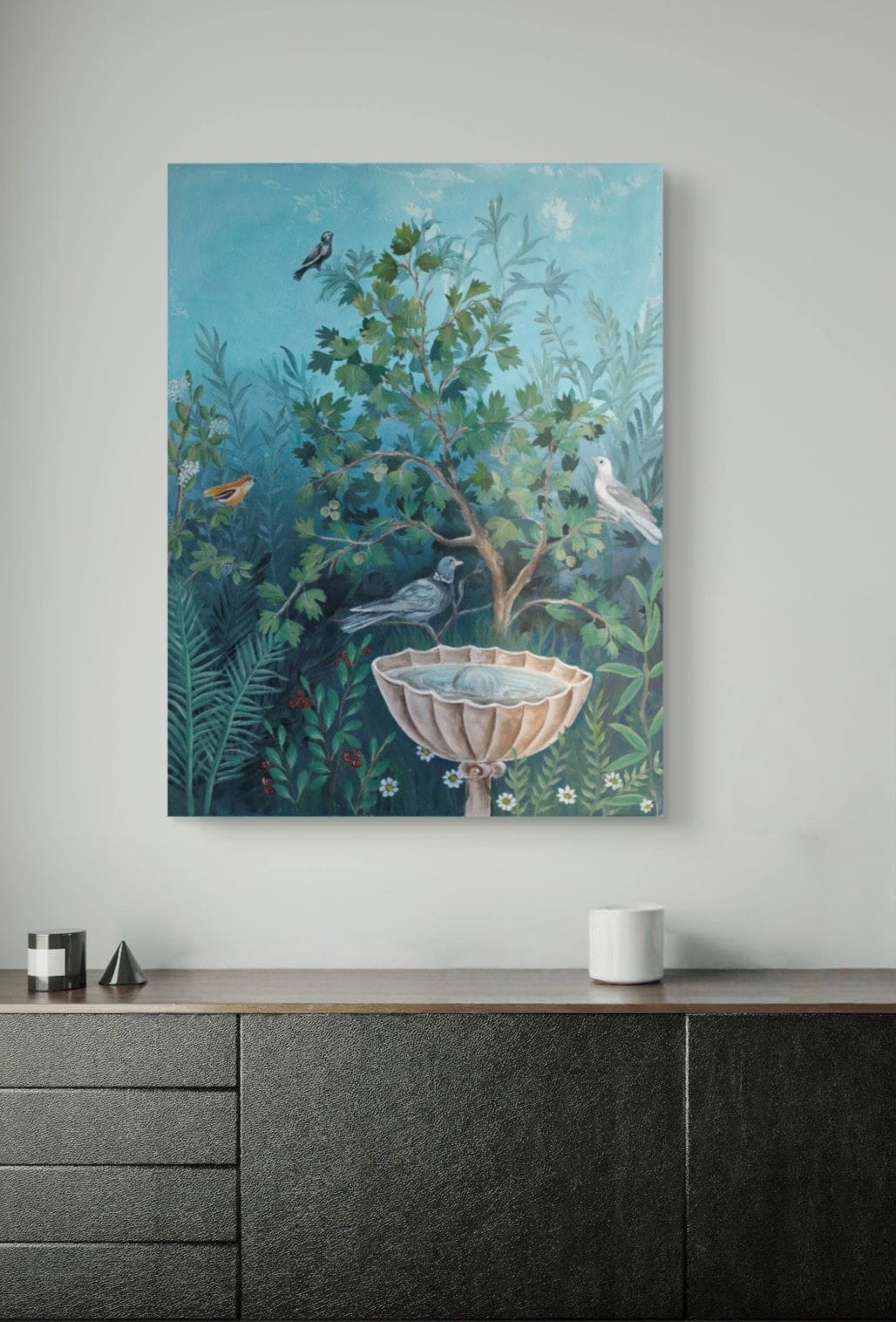 Startseite » Shop-live » Garten der Vögel – 90x120cm, Acryl auf Leinwand